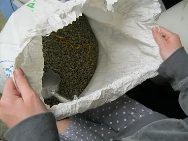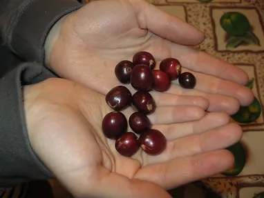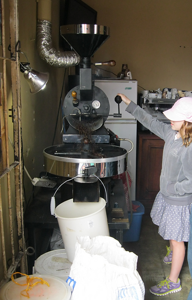 Mady: These are the coffee beans, but they are not ready yet. First you pick them, then you have to wait for them to change a certain colour, and then you peel them and then there is one bean inside and they are green at first, then you roast them for 15 minutes, then you empty them out and then there is a machine that stirs them around and cools them down. Then you crush them up and make coffee!