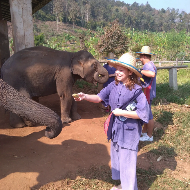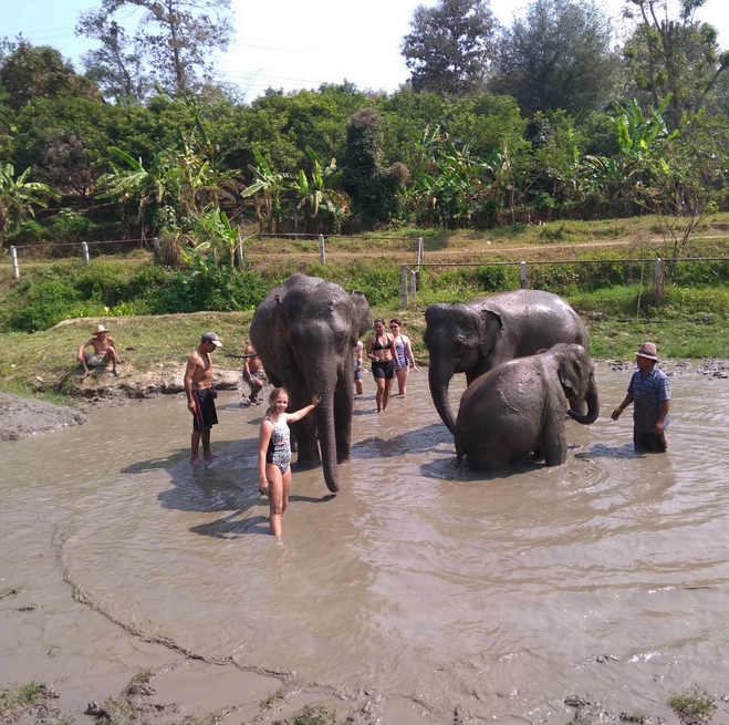 Mady: It was an experience of a lifetime that I can’t even put into words. The elephants were so nice. The oldest elephant was Natalie – she was rescued from a circus camp. She was 17 years old. The second oldest was Anna – she was 16. She was rescued from a work camp. And the third was a baby whose name was Mali. She was circus elephant too and her Mom abandoned her when she was six months old. And it’s so cute we had a connection to Mali – she did not have a Mom so she was adopted by Natalie. Natalie’s other daughter is Peanut, who is very naughty.