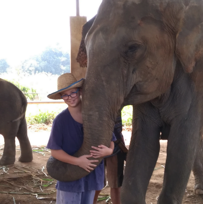 Jade: To get there we woke up early and they took us into a minivan and we drove an hour and ten minutes. When we got there we put on blue cloaks – and the reason we wore blue was because the elephants were used to that colour. The first step of the elephant care camp was to walk over to a sand flat and the elephants came to us. What we did is we had a bag of bananas and we put a banana in the elephant’s trunk and they would put them in their mouths. We then fed them grass. Fun fact: Female elephants are more sociable than male elephants because when they go on adventure in the wild, the oldest female leads them. My favourite part was we took them into a mud spa and we slopped mud all over them and then washed it off.