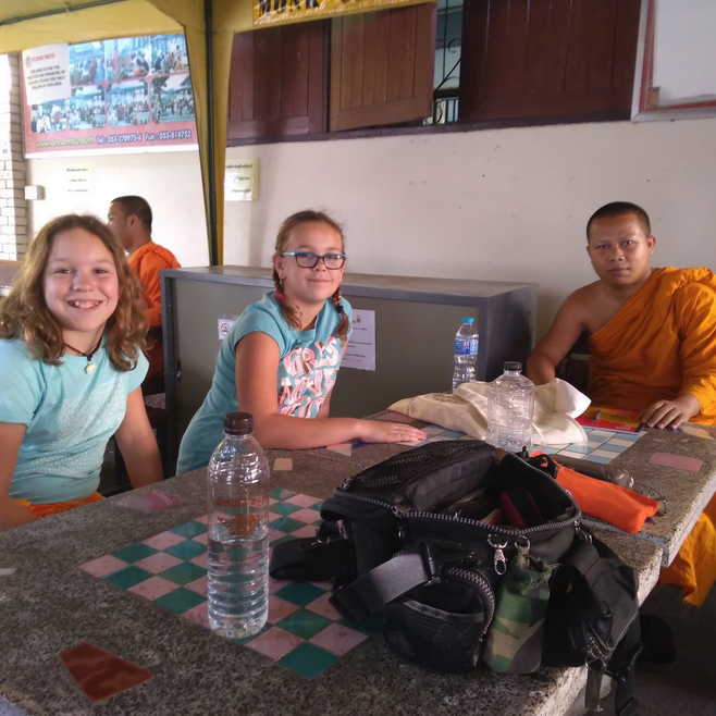 Jade: We talked with a monk. We learned how they get taught, their culture, the rules they follow – like don’t kill, don’t steal, don’t touch women, don’t spit. We learned they have to get up at 4 or 5 am and go to bed at 12 as they are studying. Did you know male monks have 247 rules they have to follow and women monks have 317? If you want to learn about Buddhism they will help you.