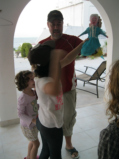 Mady: Yesterday I had my birthday party with all of the kids and we whacked Elsa (Elsa was the pinata). Pinatas are made here in Mexico. They have them on birthdays or celebrations. I had a cake and it was terrifying and I had to eat the cake without hands and my friend pushed my head into the cake.